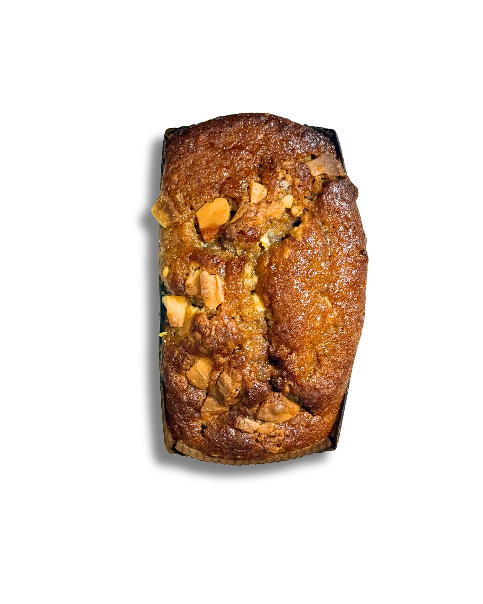 Our banana bread is made with wheat flour (gluten), milk, eggs, and butter. Some flavours may also contain nuts (e.g., walnuts, pecans) or chocolate (soya lecithin).
